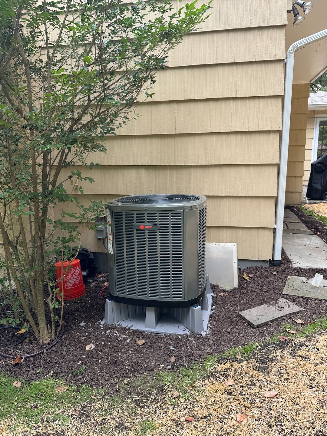 For this home, the homeowner chose a dual fuel system, combining an electric heat pump with a high‑efficiency natural gas furnace. This hybrid setup offers the best of both technologies, automatically selecting the most efficient heating source based on outdoor conditions.